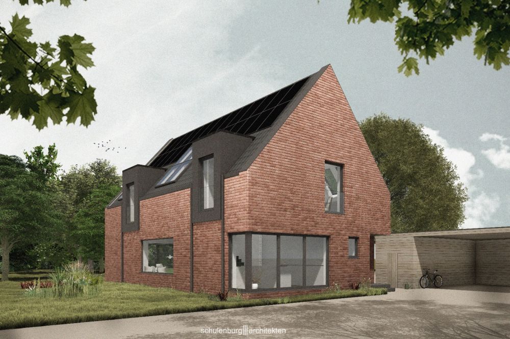 Neubau eines modernen Einfamilienhauses in Buxtehude, geplanter Baustart im Jahr 2026. Das Gebäude wird in KfW-40-NH Standard errichtet und verbindet zeitgemäße Architektur mit hoher Energieeffizienz und nachhaltiger Bauweise.