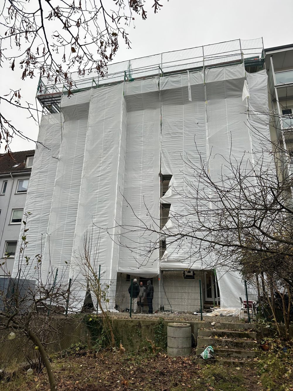 Auf dem bestehenden Gebäude wird zusätzlicher Wohnraum durch eine leichte Dachaufstockung geschaffen. Gleichzeitig erhält die Fassade eine energetische Sanierung inklusive moderner Dämmung und optimierter Anschlüsse, um den Energieverbrauch deutlich zu senken und die Gebäudehülle nachhaltig zu verbessern.