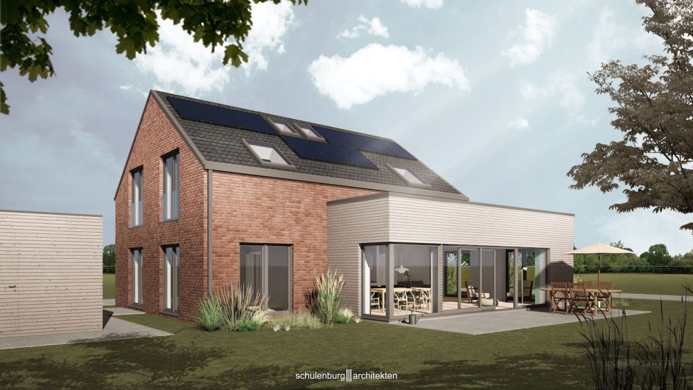 Neubau eines modernen Einfamilienhauses in Buxtehude, geplanter Baustart im Jahr 2026. Das Gebäude wird in KfW-40-NH Standard errichtet und verbindet zeitgemäße Architektur mit hoher Energieeffizienz und nachhaltiger Bauweise.