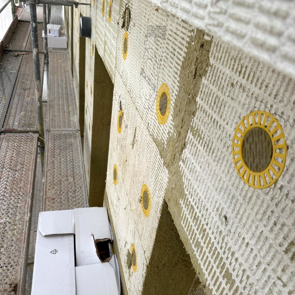 Auf dem bestehenden Gebäude wird zusätzlicher Wohnraum durch eine leichte Dachaufstockung geschaffen. Gleichzeitig erhält die Fassade eine energetische Sanierung inklusive moderner Dämmung und optimierter Anschlüsse, um den Energieverbrauch deutlich zu senken und die Gebäudehülle nachhaltig zu verbessern.
